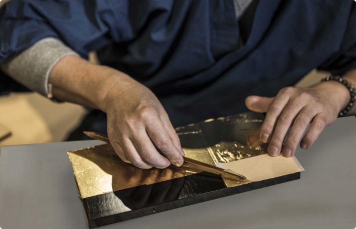 This is a technique that has been handed down for nearly 1,000 years since the Kamakura period. The gold leaf used is the thinnest gold leaf in the world, 1/10,000th of a millimeter, and is produced in Kanazawa. UNESCO Intangible Cultural Heritages